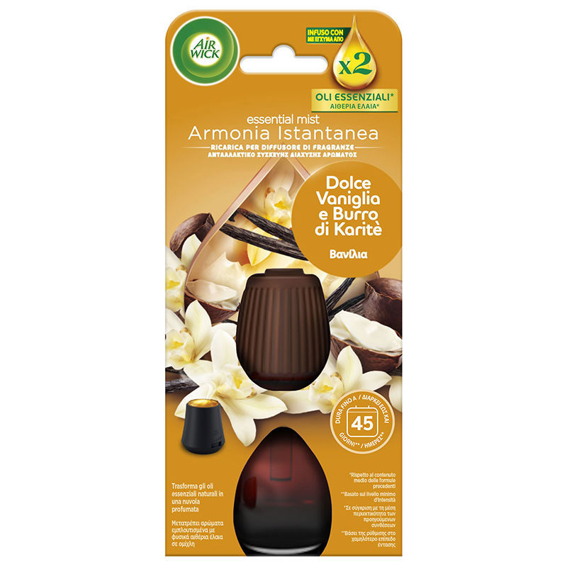Η καινοτόμα συσκευή Essential Mist της Airwick λειτουργεί με ατμό και αρωματίζει το χώρο σας με διακριτικό άρωμα. Χάρη στην τεχνολογία της μεταμορφώνει τα αιθέρια έλαια και δημιουργεί μια εξαιρετική χαλαρωτική ατμόσφαιρα στον χώρο σας.