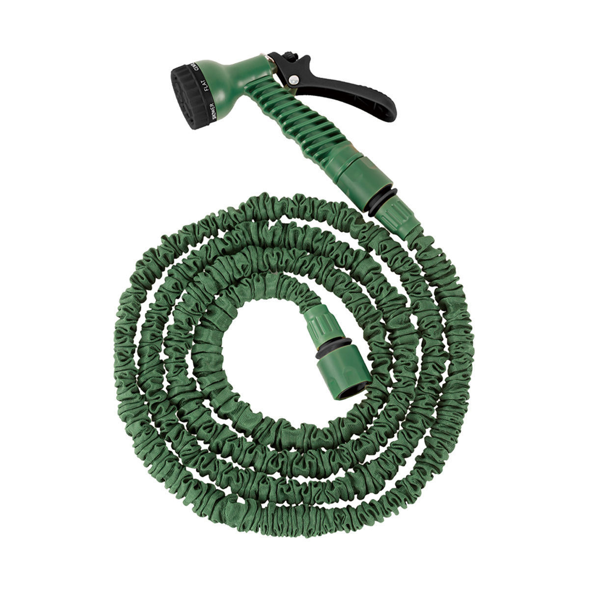Το επεκτεινόμενο λάστιχο ποτίσματος Terra είναι η ιδανική λύση για εύκολο και αποτελεσματικό πότισμα κήπου και βεράντας. Επεκτείνεται από 5 έως 15 μέτρα, εξοικονομώντας χώρο αποθήκευσης. Περιλαμβάνει πιστόλι νερού με 7 διαφορετικές λειτουργίες για κάθε ανάγκη ποτίσματος - από απαλό ψεκασμό για λουλούδια έως δυνατή δέσμη για καθαρισμό. Το σετ συμπληρώνουν 2 ταχυσυνδέσμοι και προσαρμογέας βρύσης 1/2-3/4". Κατασκευασμένο από ανθεκτικό πολυεστέρα με εσωτερικό σωλήνα TPE, εγγυάται μακροχρόνια χρήση. Ελαφρύ (0,65kg) και εύχρηστο, σε όμορφο σκούρο πράσινο χρώμα που ταιριάζει στον κήπο.