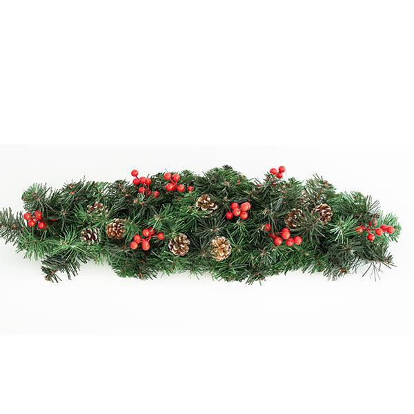 Γιρλάντα Με Κλαδιά Τόξο, Χιονισμένες Κουκουνάρες και Berries 80x22cm, 80 Tips Πάχους 8cm, Πράσινο Eurolamp 600-30342