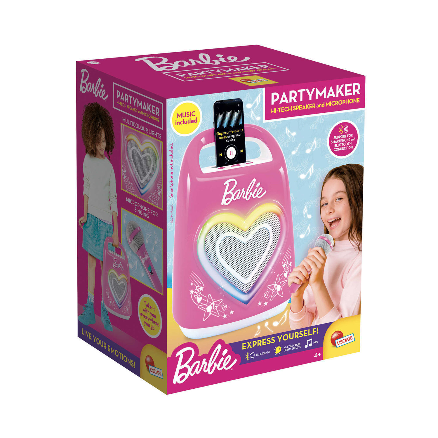 Το δωμάτιό της μετατρέπεται σε σκηνή — με το Barbie PartyMaker στα χέρια της, κάθε τραγούδι γίνεται παράσταση. Ηχείο, μικρόφωνο και πολύχρωμα φώτα, όλα σε ένα.