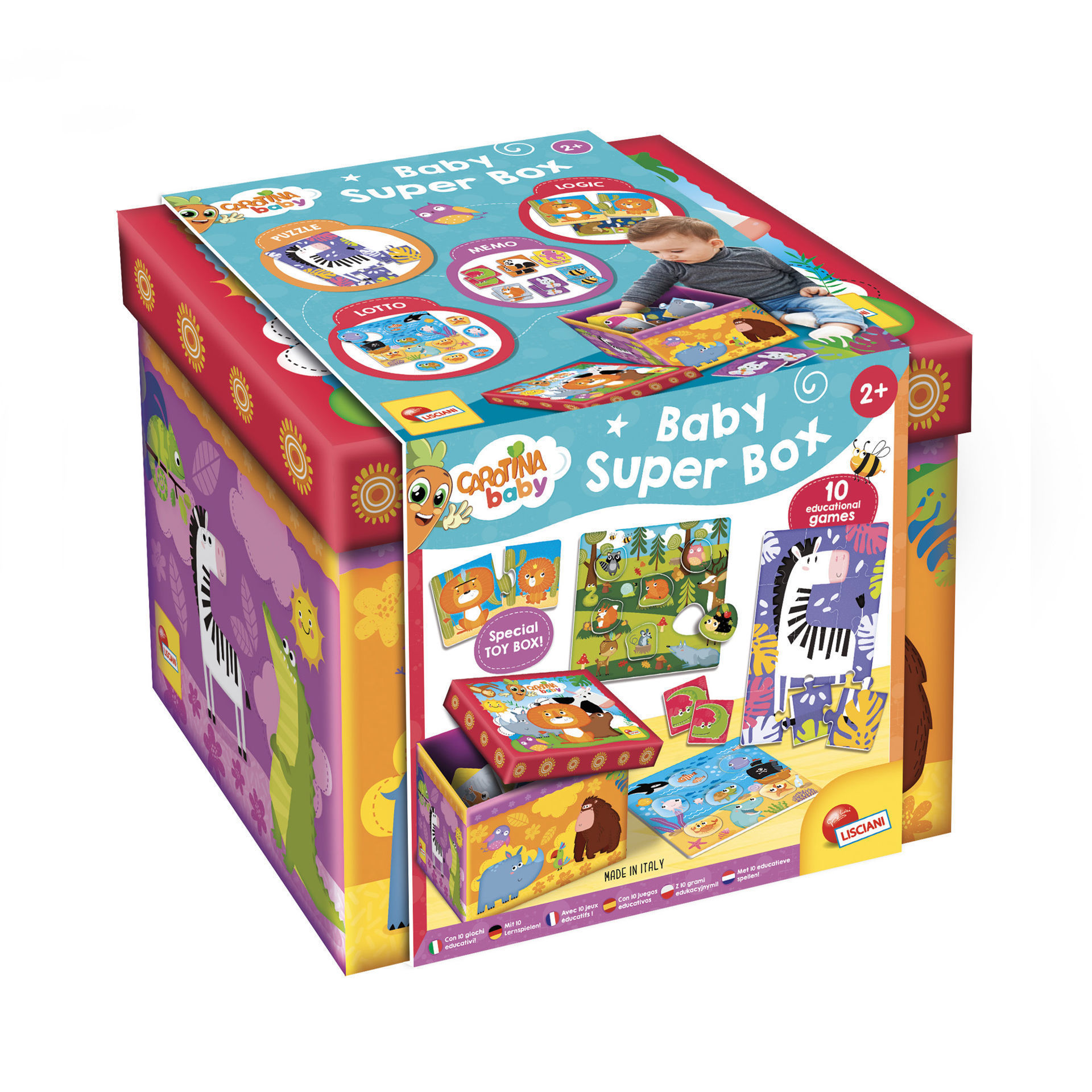 Δέκα διαφορετικά παιχνίδια, ένα κουτί-θησαυρός και αμέτρητες ώρες εξερεύνησης. Το Carotina Baby Super Box της Lisciani είναι ένα ολοκληρωμένο εκπαιδευτικό σετ που μεγαλώνει μαζί με το παιδί από τα 2 έως τα 4 χρόνια του.