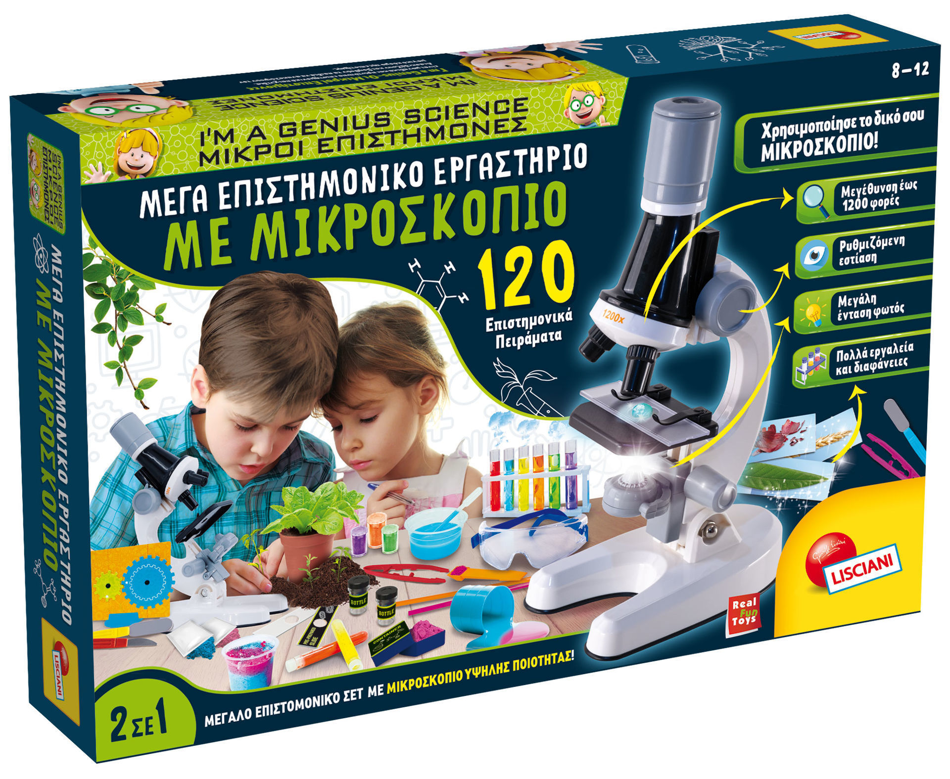 Κάποια παιχνίδια τελειώνουν σε μία ώρα. Αυτό κρατά μήνες. Το I'm a Genius Μέγα Επιστημονικό Εργαστήριο της Lisciani είναι ένα πλήρες σετ 2 σε 1 — ένα επαγγελματικό μικροσκόπιο με μεγέθυνση έως 1200x και πάνω από 120 επιστημονικά πειράματα σε έξι κλάδους της επιστήμης.