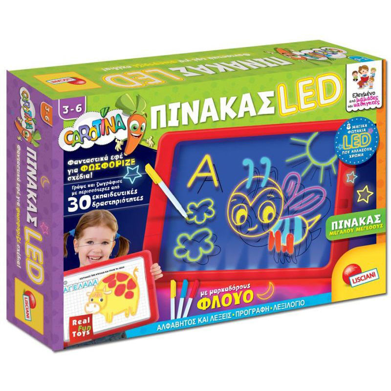 Διασκεδάστε φωτίζοντας σχέδια, γράμματα και λέξεις! Με τον πίνακα LED της Lisciani και τους φωσφοριζέ μαρκαδόρους, μπορείτε να διασκεδάσετε και να παίξετε με τη φαντασία σας! Επιπλέον, μαθαίνετε να διαβάζετε, να γράφετε και να σχεδιάζετε με τις εκπαιδευτικές κάρτες προοδευτικής δυσκολίας.