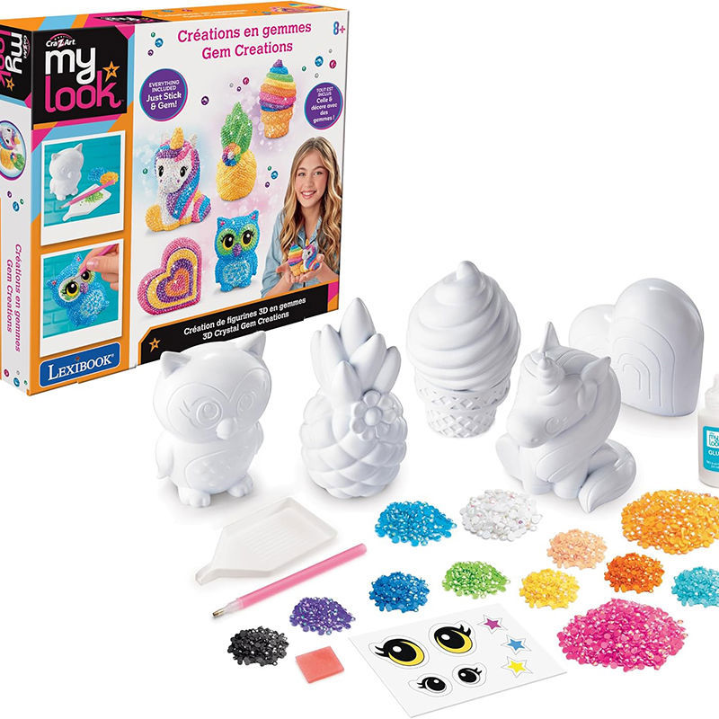 Φαντάσου να μετατρέπεις μια απλή λευκή φιγούρα σε ένα λαμπερό διακοσμητικό γεμάτο χρώμα και φαντασία. Με το Lexibook CRSS4 My Look, τα παιδιά από 8 ετών δημιουργούν μόνα τους εντυπωσιακές 3D φιγούρες, τοποθετώντας ένα-ένα τα ιριδίζοντα gems με ειδικό στυλός — μια δραστηριότητα που κρατά την προσοχή τους και ανταμείβει τη δουλειά τους με αποτέλεσμα που αξίζει να δουν!