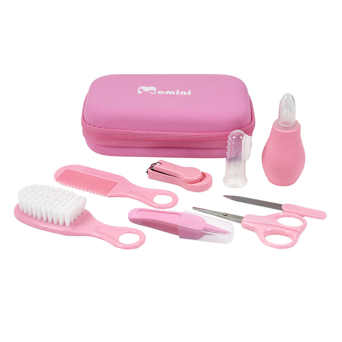 Κάθε νέος γονιός ανακαλύπτει γρήγορα πόσα μικρά εργαλεία χρειάζονται για τη φροντίδα ενός μωρού. Το σετ Momini Pinky λύνει αυτό το πρόβλημα με έναν απλό τρόπο: συγκεντρώνει τα 8 βασικότερα αξεσουάρ σε μία compact θήκη που χωράει παντού - από το μπάνιο μέχρι την τσάντα αλλαξιέρας.