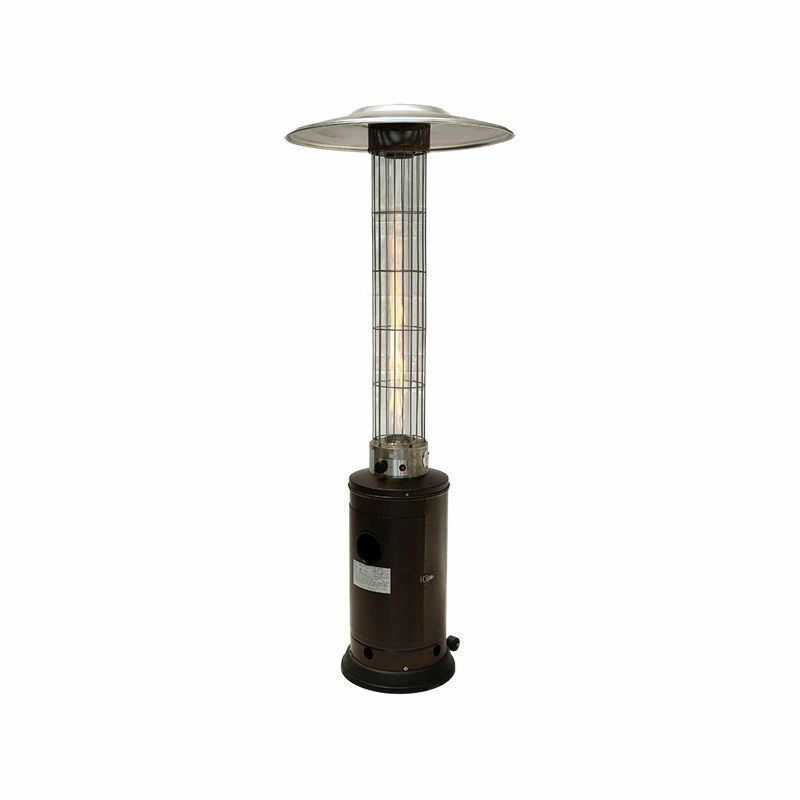 Το σφυρήλατο σώμα από χάλυβα σε bronze απόχρωση προσφέρει ανθεκτικότητα στις καιρικές συνθήκες, ενώ το προστατευτικό πλέγμα γύρω από το φωτοσωλήνα εξασφαλίζει ασφαλή λειτουργία. Η ηλεκτρονική ανάφλεξη και ο διακόπτης ρεοστάτη σας επιτρέπουν να ρυθμίζετε την ένταση της θέρμανσης ανάλογα με τις ανάγκες σας.
